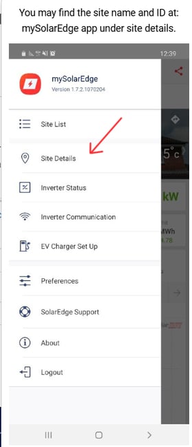 The site ID can be found in the SolarEdge app in Site Details. The site ID always contains only numbers.